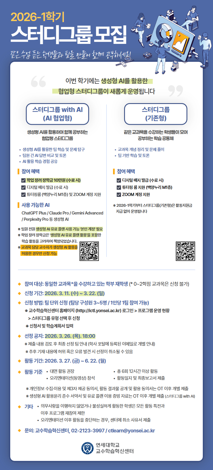 1. 스터디그룹 with AI (AI 협업형): https://ictl.yonsei.ac.kr/ko/learning/S_apply/view/324